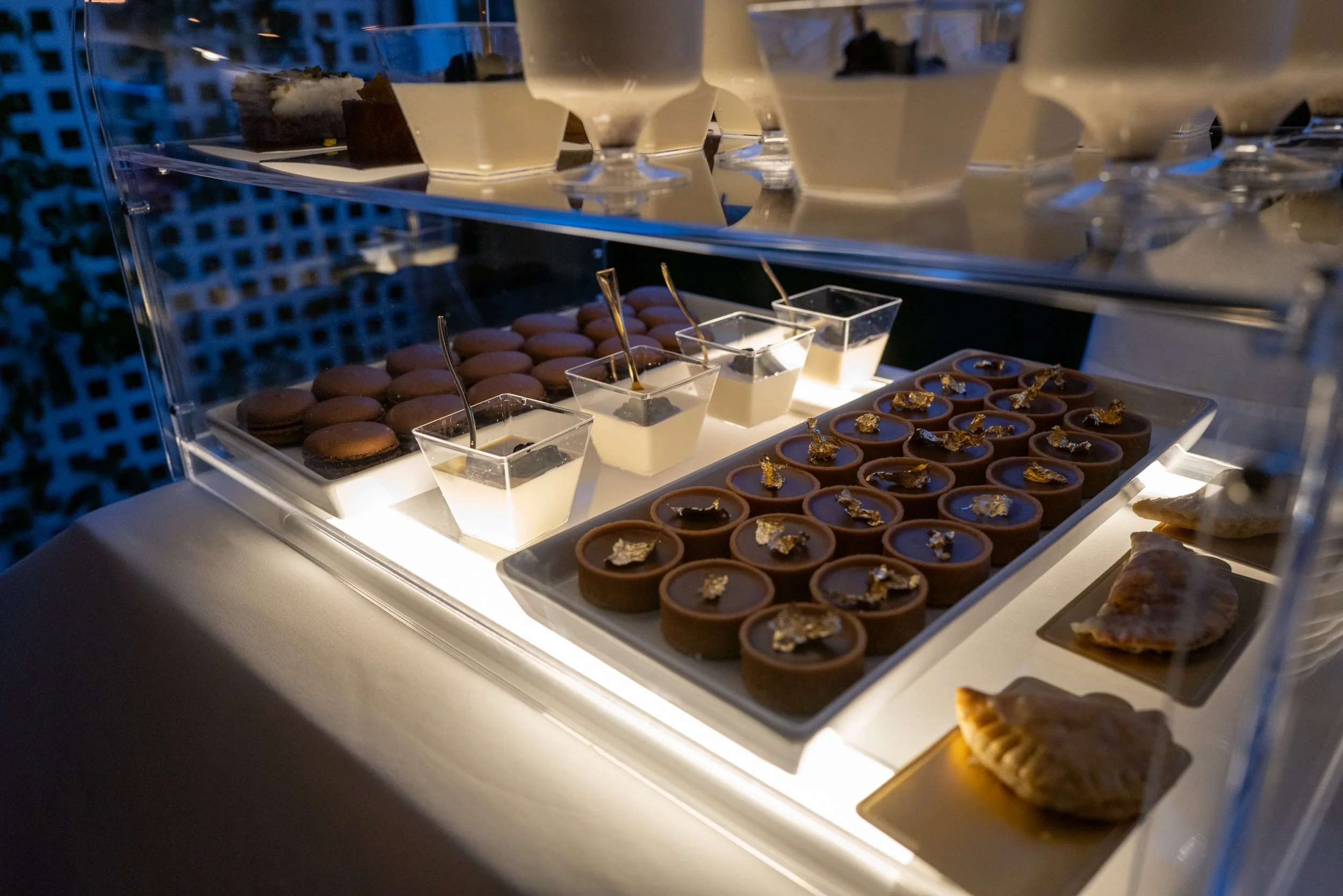 DessertsSample Menus Spring Lemon Posset Mini Chocolate Eclairs Linzer cookies Fall Personal Tarte Tatin Mini Chocolate Caramel Tarts Mini Banana Cream Pie Cups Profiteroles Summer Mini blueberry Hand pies Chocolate Pot de creme Madeleines Summer pavlovas with lemon curd and fresh berries
