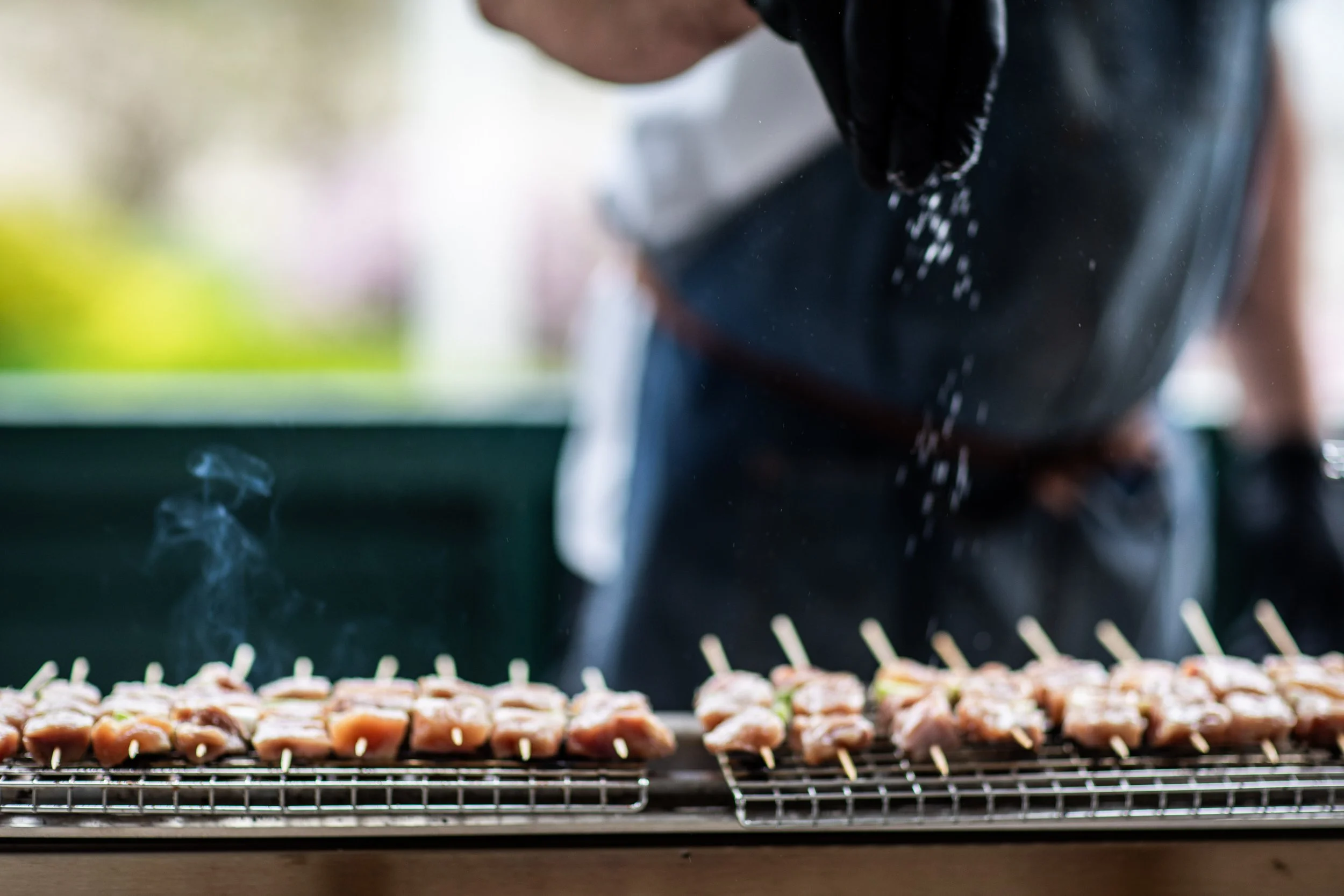 StationsSample Menus Raw Bar oysters 3 types and shrimp cocktail, mignonette, cocktail sauce, lemons, horseradish Raclette Station salami, grapes, apples, cornichon, potatoes, bread Yakatori Station assorted grilled Japanese skewers Street Taco Bar pork, chicken, fish, veg, pickled veg, crema, hot sauce, cabbage, flour and corn tortillas Maine Station lobster rolls, fired clams, popcorn shrimp, chowder cups Grazing Table sliced meats, cheeses, fresh fruit, dips, veggies, pickles, olives, breads and crackers Ramen Bar noddles, broth and assorted toppings Grilled Cheese Bar american, cheddar, gruyere cheese with apples, serrano, tomato, bbq chicken